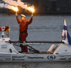 Jari Saario soutaa erikoisrakennetuilla veneillä. Saario esitteli venettään Helsingissä 2023.