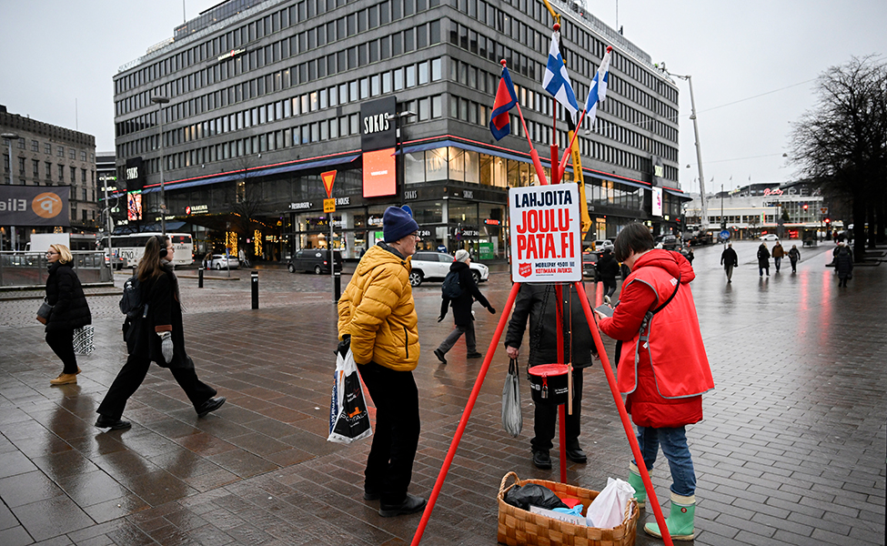 Pelastusarmeija kerää jouluna raha köyhille lapsiperheille ja vanhuksille. Keräyksen varoilla ostetaan ihmisille ruokaa ja lahjakortteja.