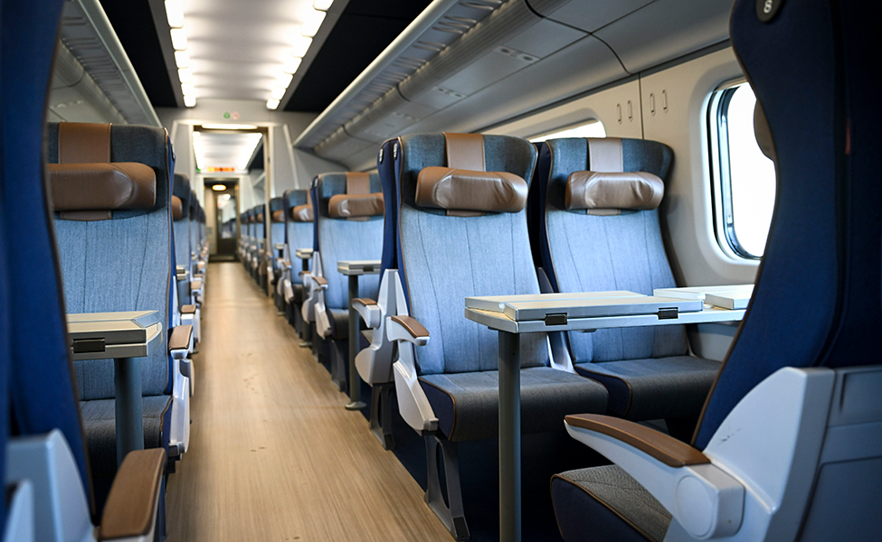 VR:n uusi Pendolino Plus Junavaunu sisältä kuvattuna VR:n uusien Pendolino Plus -junavaunu sisältä.
